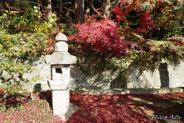山門旁的石燈籠一旁,就有火紅的楓葉,也是我們挑選這個季節才來山寺的原因啊。