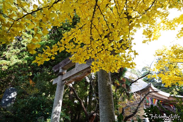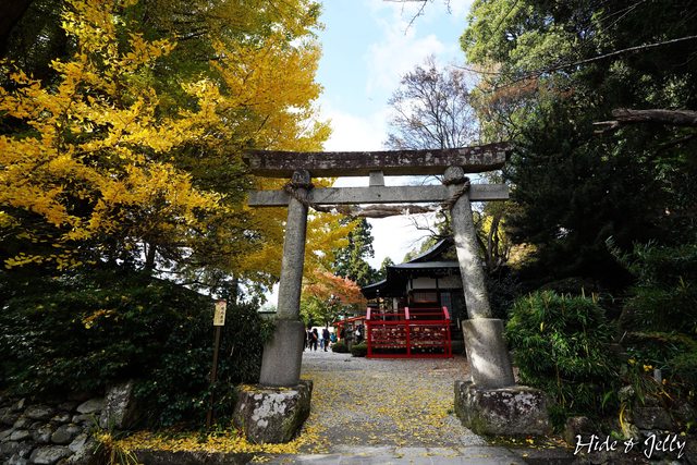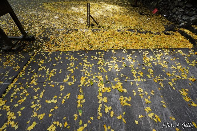 本堂往山上的路上,就有一棵超大的銀杏,已經轉黃。一旁日枝神社的鳥居搭配下,很有