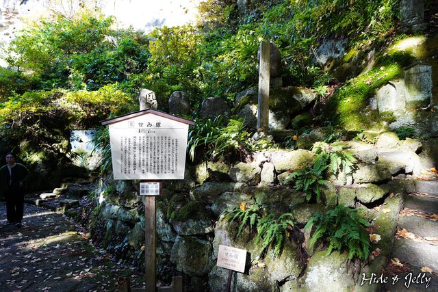 石階段中段出現的「せみ塚」(蟬塚),是呼應松尾芭蕉的俳句中出現的「蟬聲入石」,芭