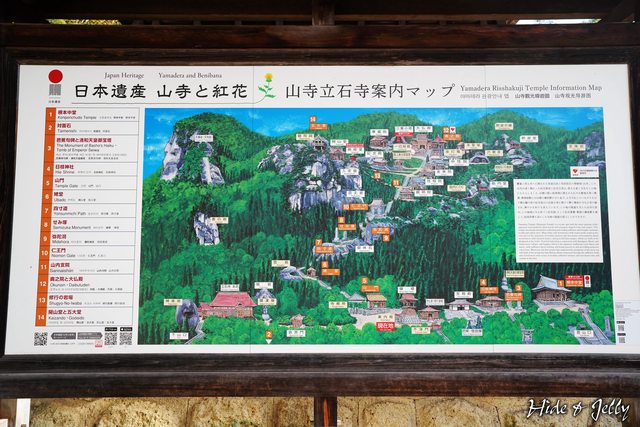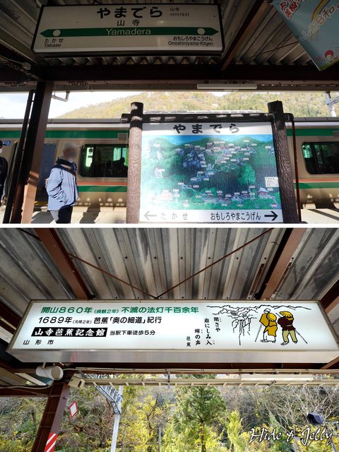 我們從仙台駅出發,約一小時可以抵達山寺駅,月台上就有山寺的地圖與開山年代、不滅