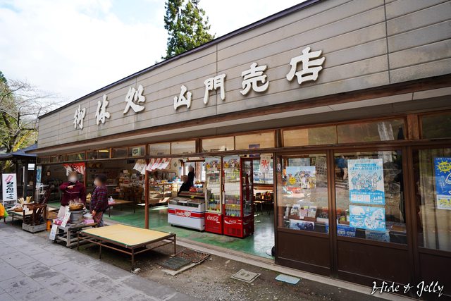 一間「山門賣店」,門口正賣著山形名物「力こんにゃく」(力蒟蒻),剛好肚子有點餓了