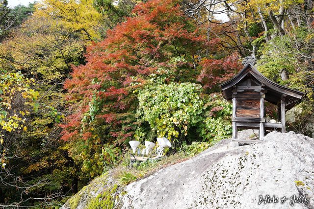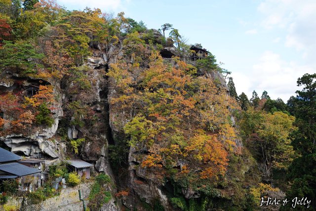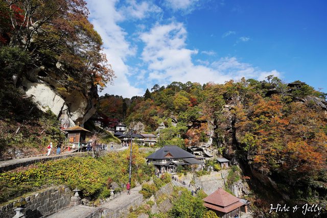 山寺,除了可以在山腳遇到山形縣最大棵的銀杏,沿途雖說不上有壯闊的楓紅,巨石與嵌