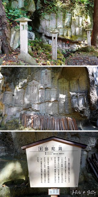 蟬塚之後的「彌陀洞」,是利用山寺的巨大擬灰岩雕塑的石佛,最高達4.7公尺,形成宗