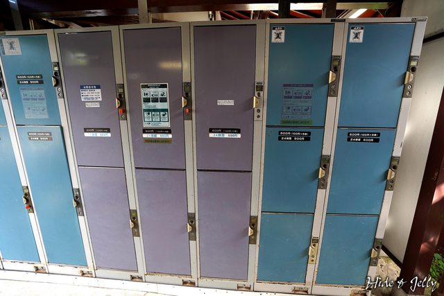 車站的廁所外,就有一排寄物櫃可以使用,但數量不多,且以舊的投幣式寄物櫃來說,小