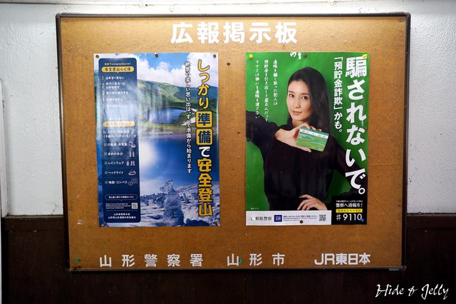 通往月台的長廊還有山形出身的美女藝人橋本愛實的防詐騙廣告,「愛實也不會把存摺給