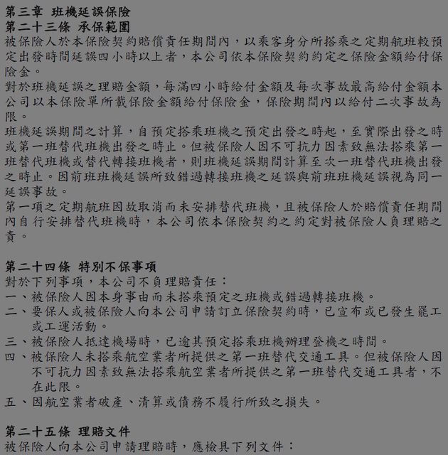 → koganozomi : 供替代班機你要自己訂保期內符合理賠條件的班機吧 09/29 00:22
