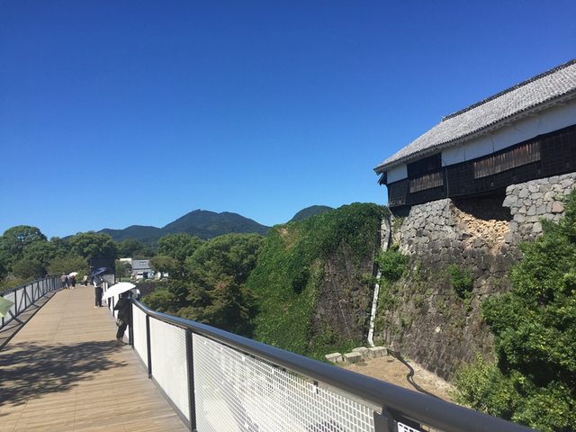 今天天氣依舊很好,仍然是熱到令人受不了,我們走路前往熊本城,