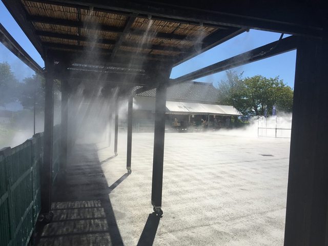沿路感覺熱到快融化了,熊本城前的廣場非常多消暑的噴霧設施,