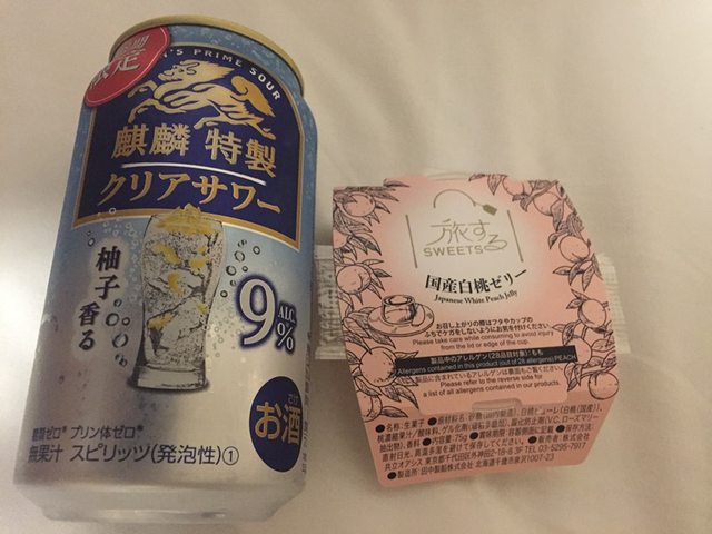 吃完拉麵來杯酒配上冰箱裡贈送的果凍,就準備明天要回台灣了。