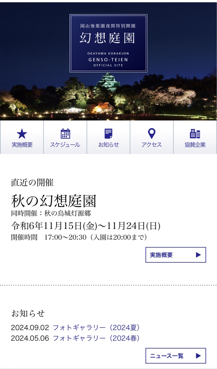 → ceriselin : 11/15-24岡山後樂園有夜間點燈活動,可以參考。 09/30 23:49