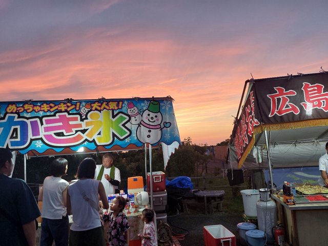 接下來小孩負責佔位子,大人趕緊去屋台補充食物。