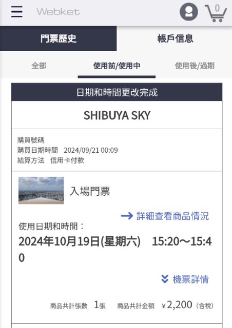 標題[讓售] 20241019 日落 SHIBUYA SKY 門票