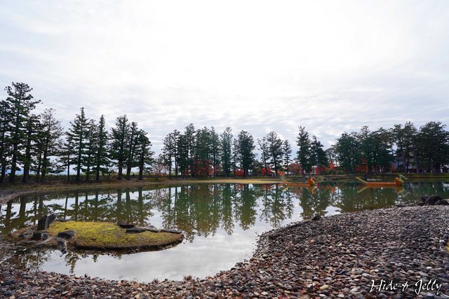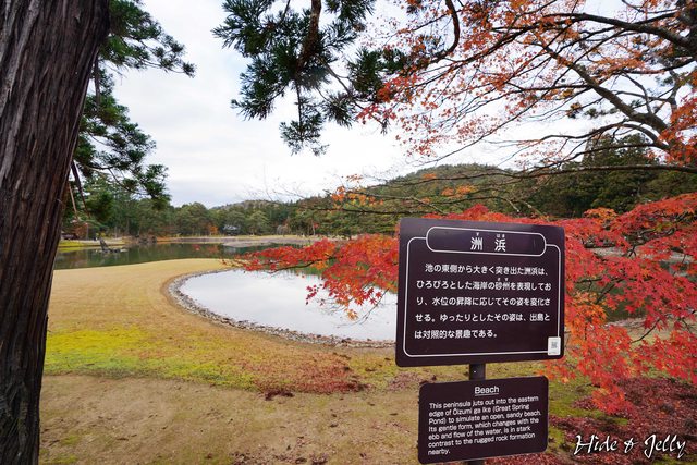 大泉池的最東側,還有一處「洲浜」,這是仿照海岸線的砂洲而做的造景,可以依據水位
