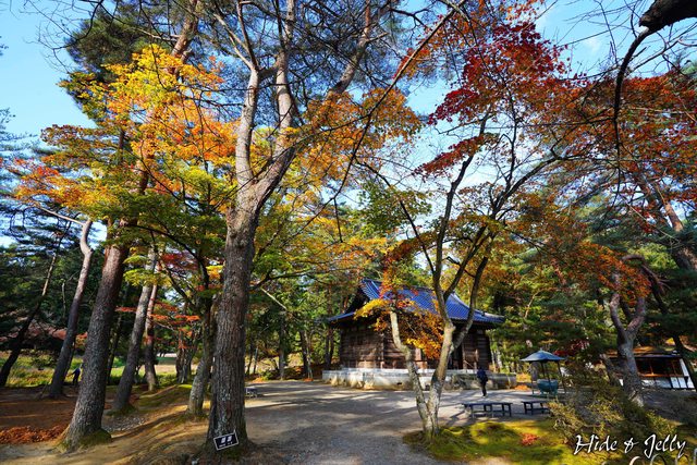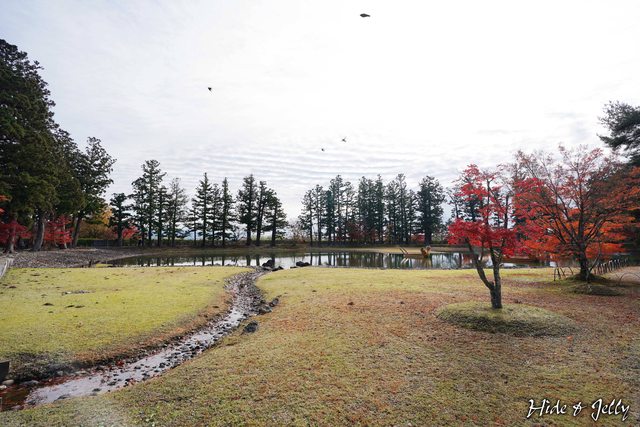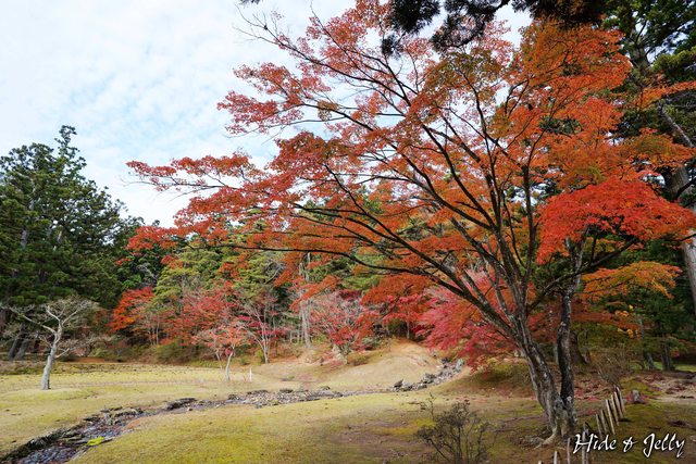 從本堂後方順路繞行毛越寺庭園,覺得不知道是不是今年氣候異常的關係,許多楓葉還沒