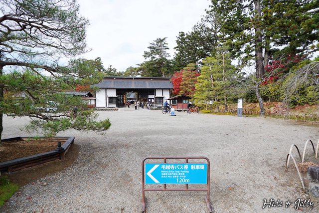 正門上方,都是籐原氏的藤紋,特別名勝、特別史跡與世界遺產的木牌,看起來也有重新