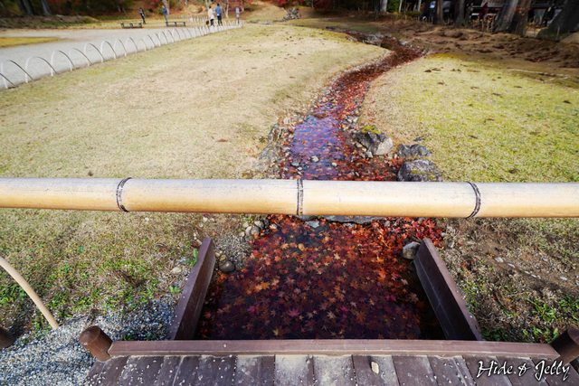 「遣水」中漂浮著許多小楓葉,相當可愛。