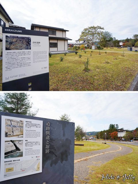東側則有毛越寺的東門跡,過去是通往觀自在王院以及牛車停車場的通道,有敷石道連結