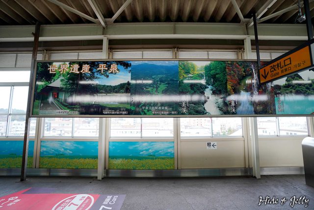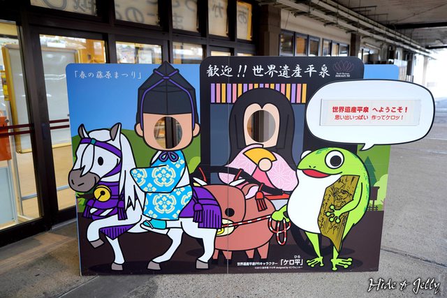 從一ノ関駅搭普通車前往平泉駅車程僅7分鐘,平泉駅月台上有歡迎大家的平泉吉祥物「