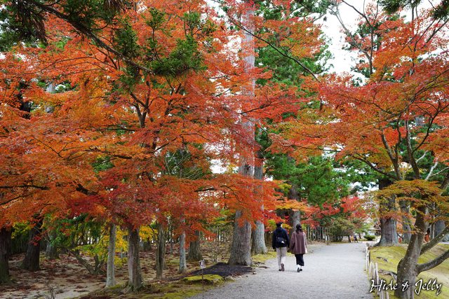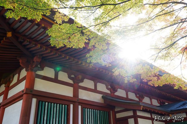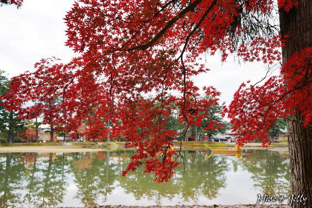 大泉池東北角還有一處「常行堂」,從參道往大泉池看去,石燈籠、楓葉、水池,還有前