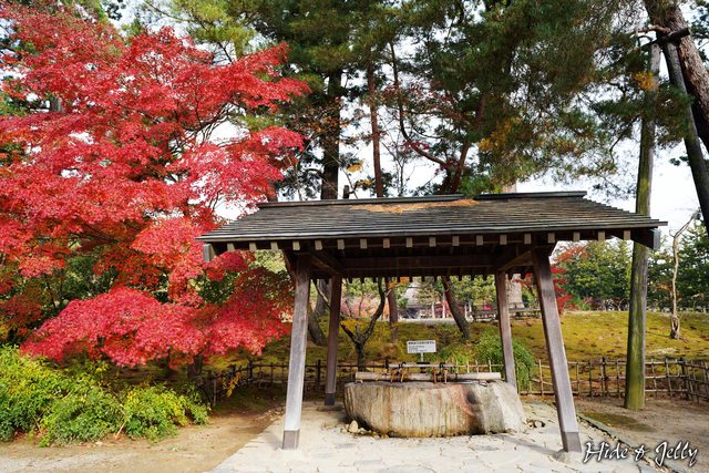 門口的手水舍旁,也是超火紅楓葉相伴,毛越寺的紅葉果然不讓人失望。