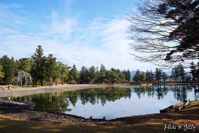 從本堂旁望去毛越寺庭院內的「大泉池」(不是大泉洋),還是一樣的令人療癒,而且天氣