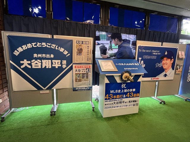 另外上方的螢幕輪播著大谷錄給奧州市民的影片、以及製作手像和簽名的相關畫面