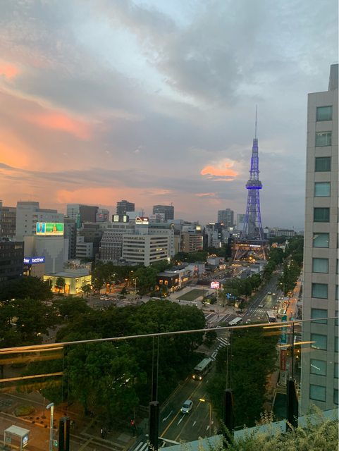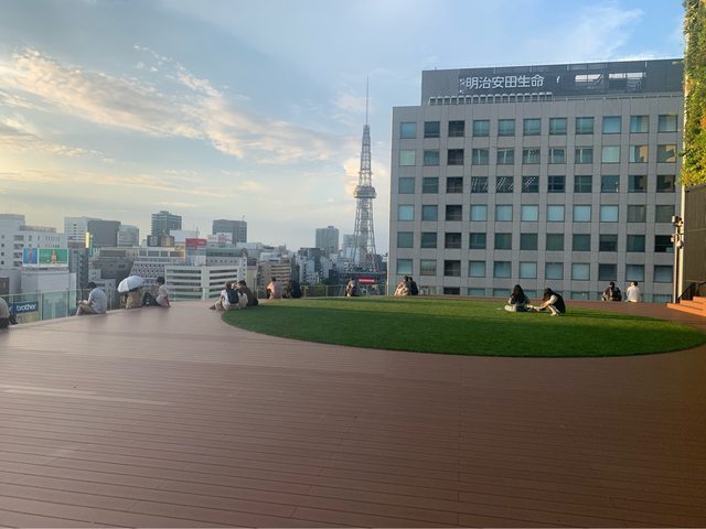 中日ビル的7樓戶外廣場觀看夕陽,這是一個讓人放鬆的完美結尾。