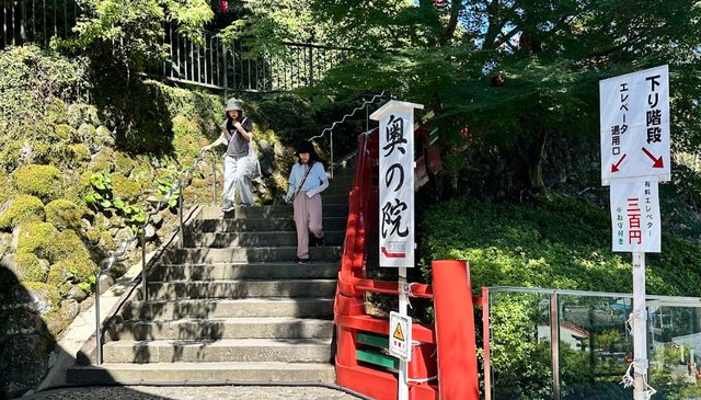 電梯300是只能到中間的本社 奧之院只能自己走樓梯 真的很難爬... 看動畫的時候我以為我是咲體力無窮 真的到了才發現我是爬到往生的龍哥...