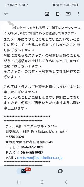推 jh961202 : 飯店主管回信的用詞是真的非常嚴重的程度了 10/07 10:29