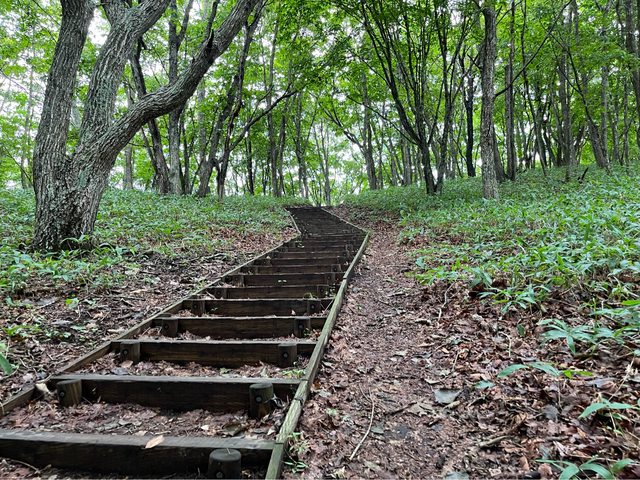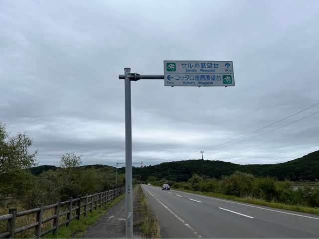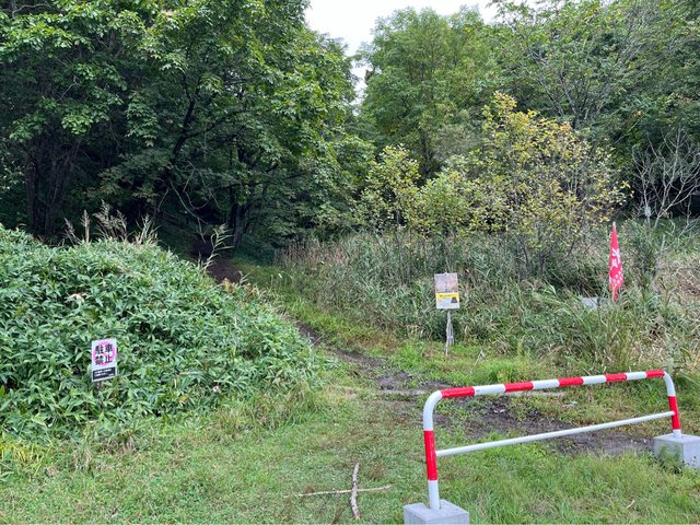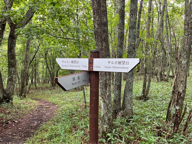 沿著馬路往サルボ展望台出發,約20分鐘才到登山口,有熊出沒的警告標誌。