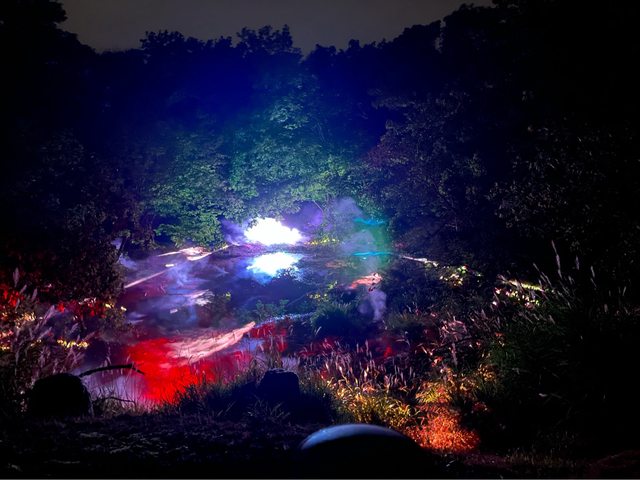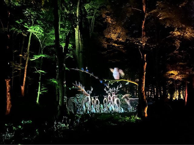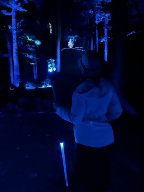 雖然聽不懂日文,但先了解一下故事內容,以節奏權杖與數位體驗互動,搭配森林中的光