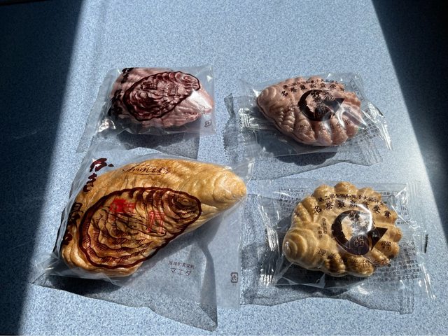 回程買了2家的牡蠣最中給老婆當伴手禮。果不其然,吃起來都很甜。