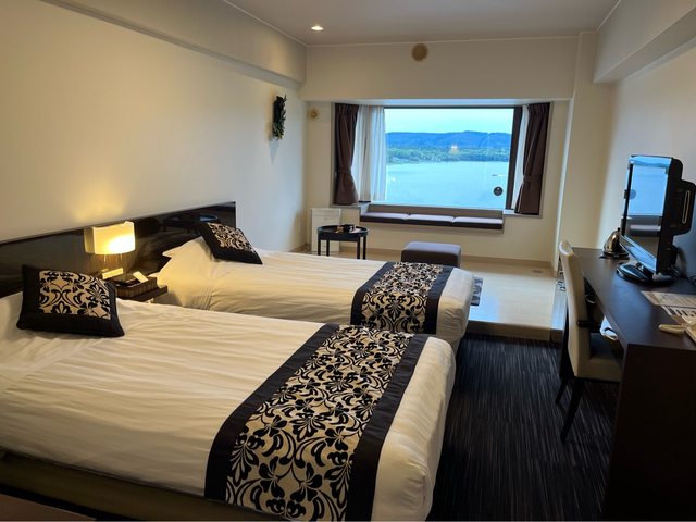 大約16:20抵達飯店-鶴雅花悠香,7樓的房間可以看到阿寒湖,視野不錯。