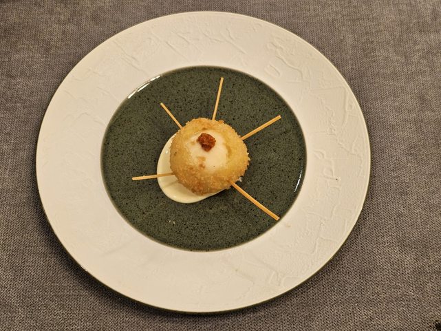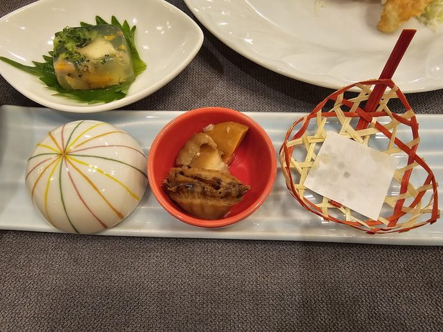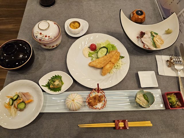 晚餐滿豪華的,因為選的是有海膽的方案,所以有一小缽海膽,還有類似奶油可樂餅的自
