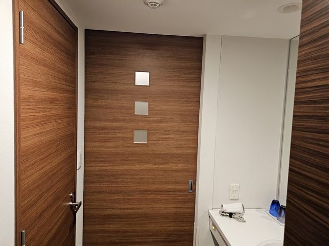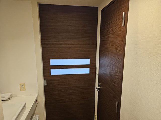 門可以拉起來隔開,另外因為飯店有溫泉大浴場所以只有乾濕分離的淋浴間沒有浴缸。