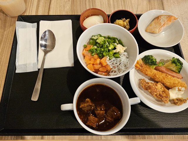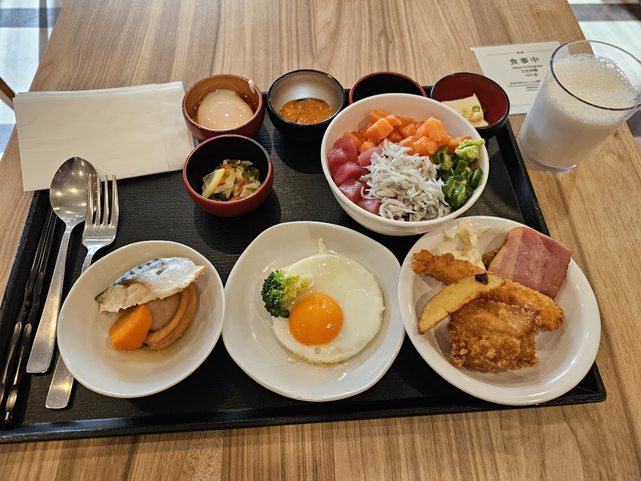 早餐跟旭川的差不多,本來看官網有生干貝滿期待的,結果實際上只有切碎的鮭魚+鮭魚