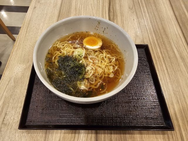 吃,內容就是麵、海苔、蔥和湯(這天剛好是十五夜所以多了一片蛋),味道還算可以。