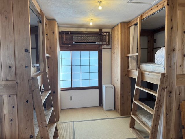 房間部分總共有四間臥室,分別是小雙人床、四人上下舖、和式房、雙床房