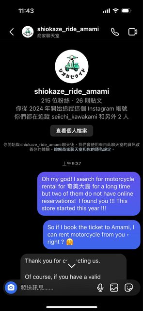 然後,我從未去過奄美,也不知道老闆是男是女,是真的純粹想去但真的最後因為租機車