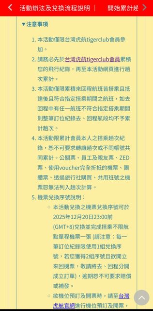 以上分享....感覺是虎航有些機票趟數累計規則跟定義上,沒有很清楚確認吧?也許寫程