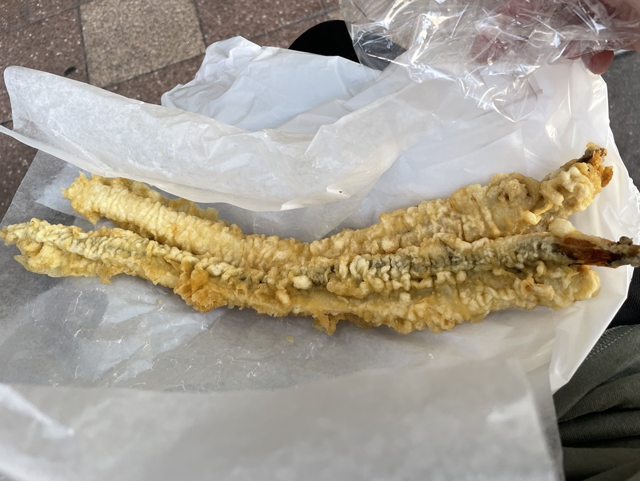 海鮮有夠好吃。點了兩條超大穴子魚,才1260円。幾乎跟手臂一樣長,又鮮又甜,一口接一口,讓人越吃越過癮,印象深刻