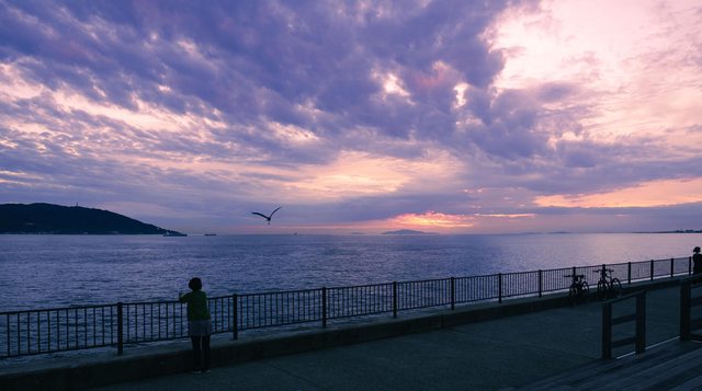 吃飽後四點多抵達明石跨海大橋,看海放空。看到天黑才回大阪