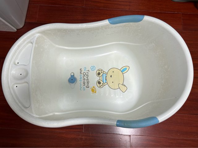 嬰兒澡盆邊有皂垢,努力處理過,