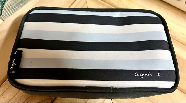 物品名稱:agnes b. 小收納包,外觀有使用痕跡,內含有未使用過的牙刷+ 小鞋把。