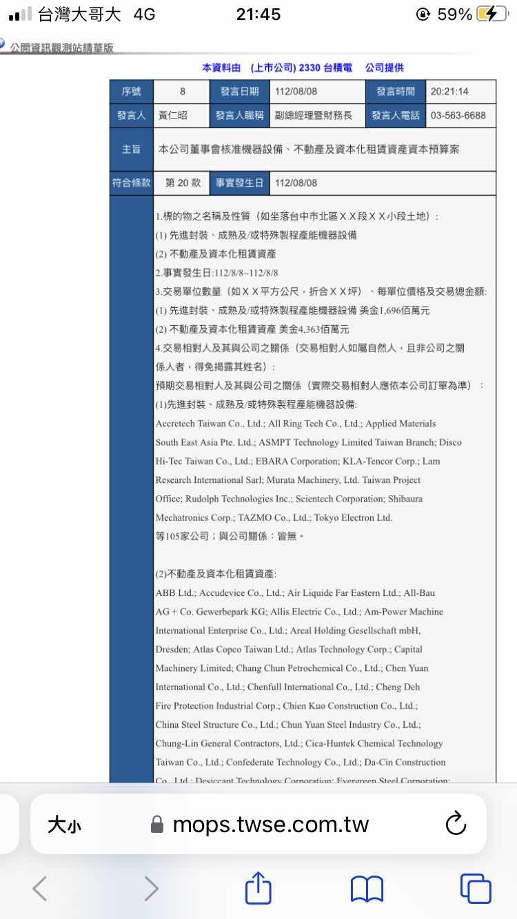 → IECHUAN : 標單早就準備發出來了 甚至配套廠商都拿到訂單了 08/09 00:11