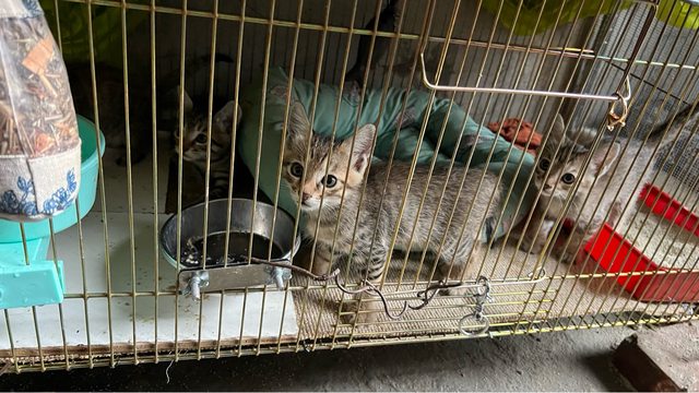 目前籠養原因是為了能讓貓媽媽能順利哺乳,方便管理,且因為家門外面就是大馬路,怕