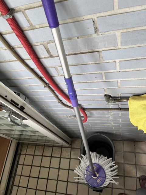 物品狀況:桶子比較舊正常使用沒什麼問題、桿子和拖把頭使用沒幾次,機車可能不大好載