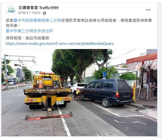 → haohaoYA : 順便科普一下如果是路旁久停的廢棄車也可以打1999, 08/28 22:38