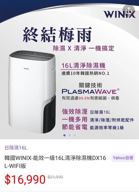 推 wings0713: 前後共買了兩台winix除濕機 無清淨功 180.218.87.106 12/05 08:03