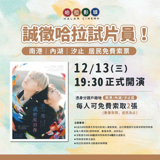 標題[情報] 哈啦影城港湖汐居民12月13日免費試片
